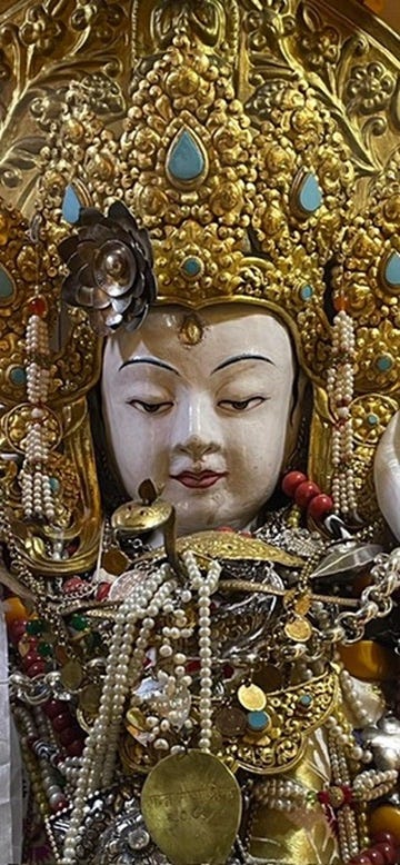 Khandrola began turning that cycle of teachings last Spring, when my pilgrimage began at the behest of a young monk’s invitation to visit sacred Tara sites nearby - beginning with the ‘talking’ White Tara Samboghakaya (“enjoyment body”) in Thamel (ancient Kathmandu) that urged the Indian saint Atisha to take the Dharma to Tibet before it disappeared from India.