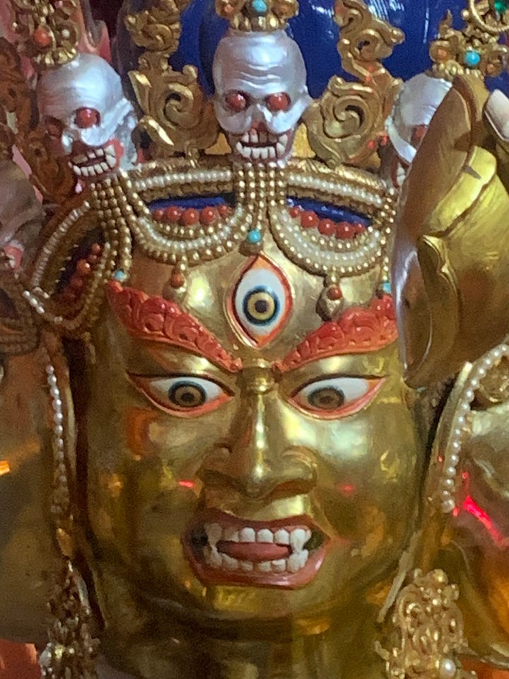 The sophisticated psychology of Mahayana Buddhism is encoded in its many deity practices which, unlike most religions, are not based on a belief that these deities are ‘real’ or worth dying for. They are spiritual archetypes, basically. The basis of my own deity practice has been White Tara for over a decade now, and somehow She miraculously, from my perspective anyway, manifested in human form (“Nirmanakaya” or emanation body) in The Land of Medicine Buddha (Redwoods of northern California) two summers ago - a prospect I never even imagined to be possible - leaving me no path forward other than to move to the place Khandrola is building for the express purpose of revealing ‘tertons’ - or secret teachings and practices - from the “Great” (5th) Dalai Lama.