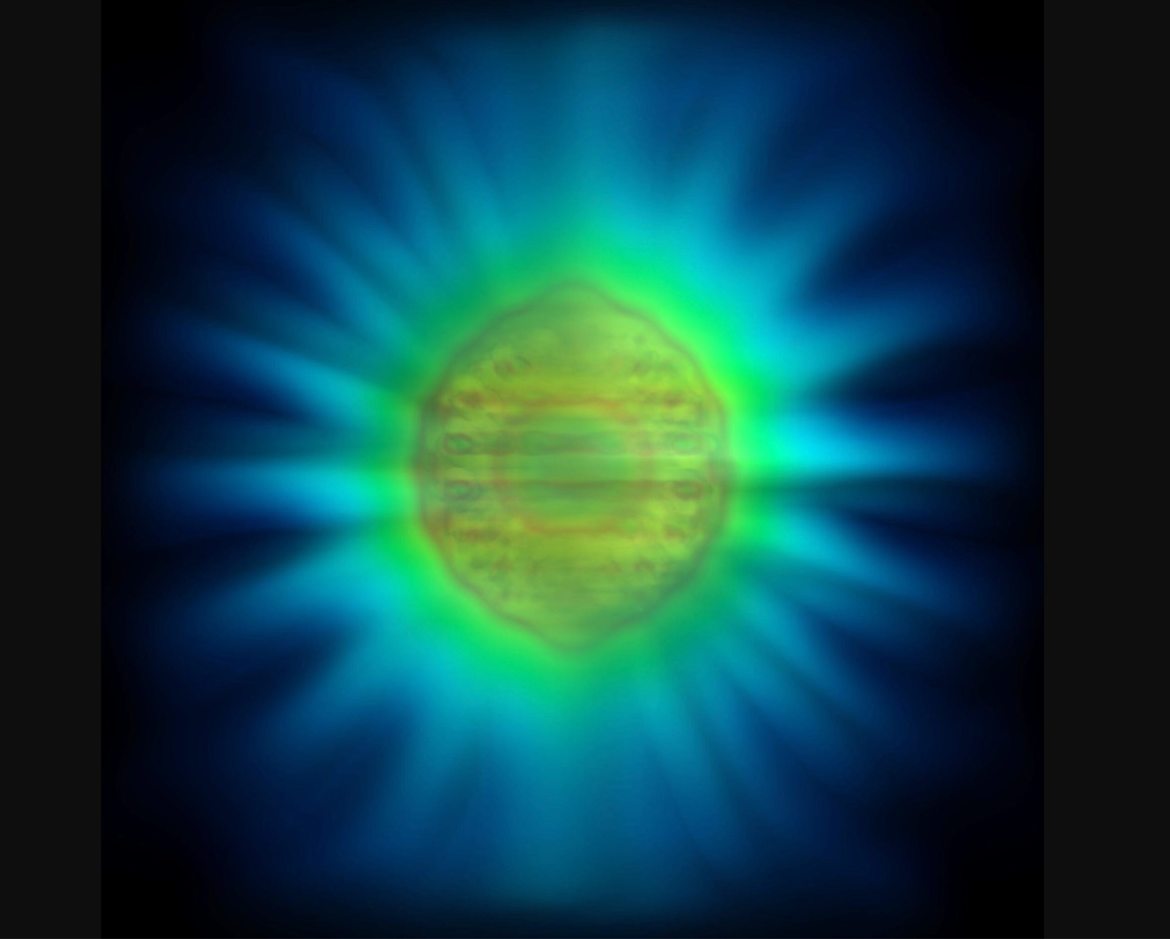 And yes, sometimes it can appear like an eye made of light, looking back at our own unfocused gaze in this field awareness. Recently, as spiritual synchronicity would have it, I saw that first photograph ever taken of a photon of light, and I was really struck by the resemblance to this self-arising flower-jewel!