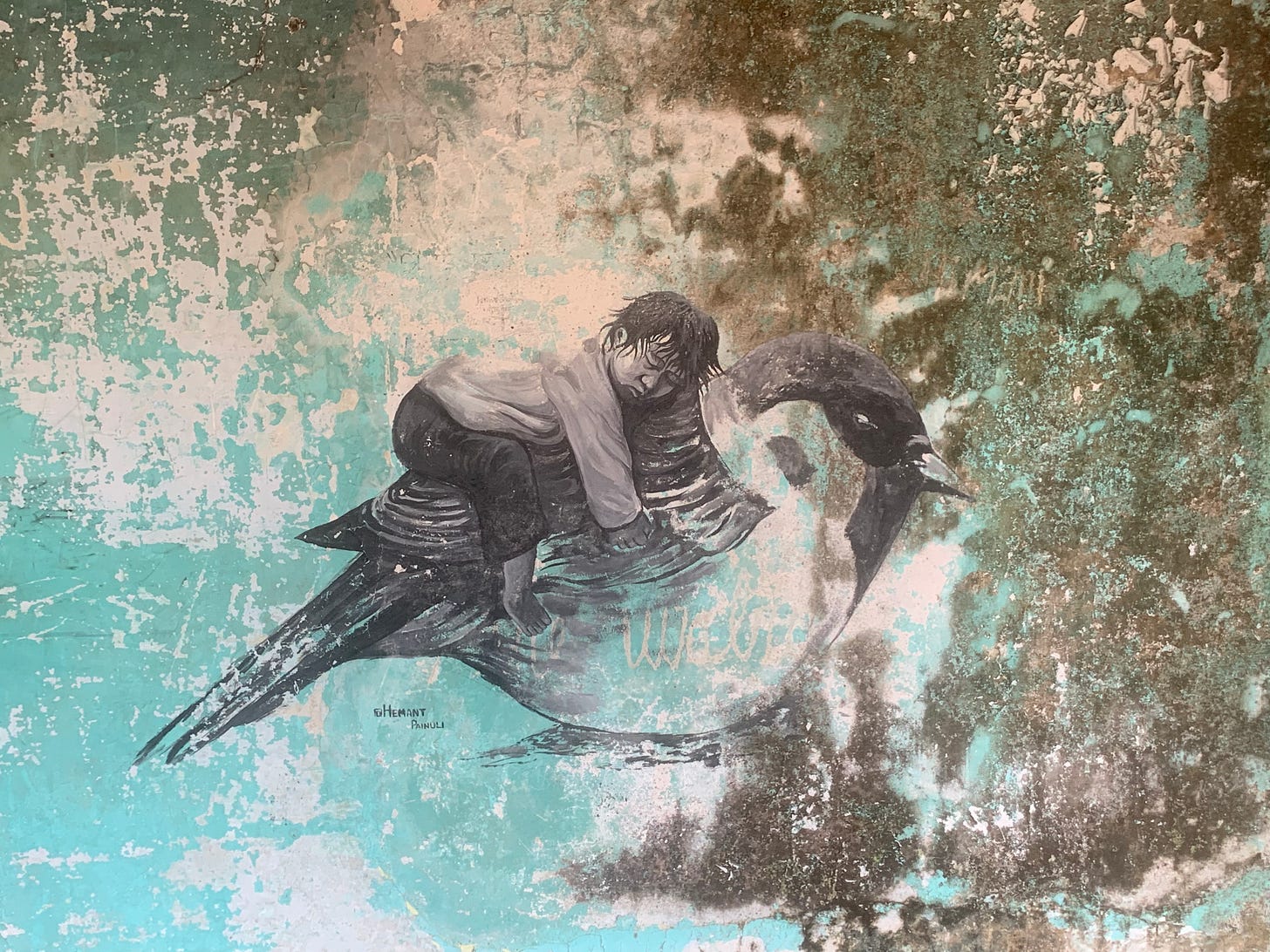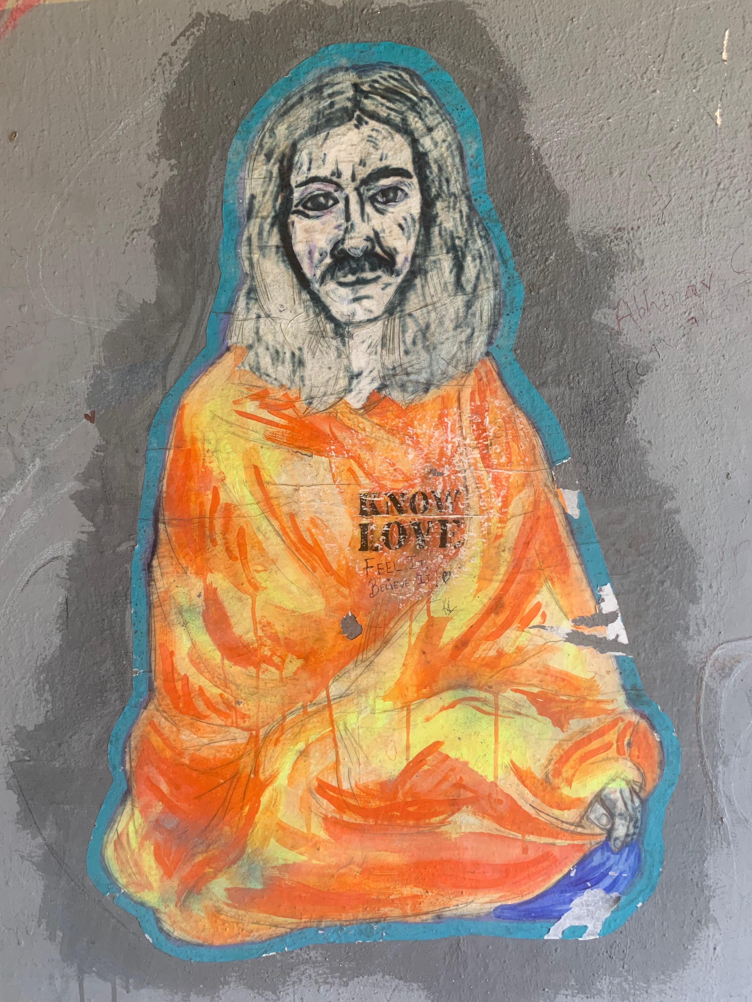 he peers curiously at this pilgrim on holy refuge from another time and place,