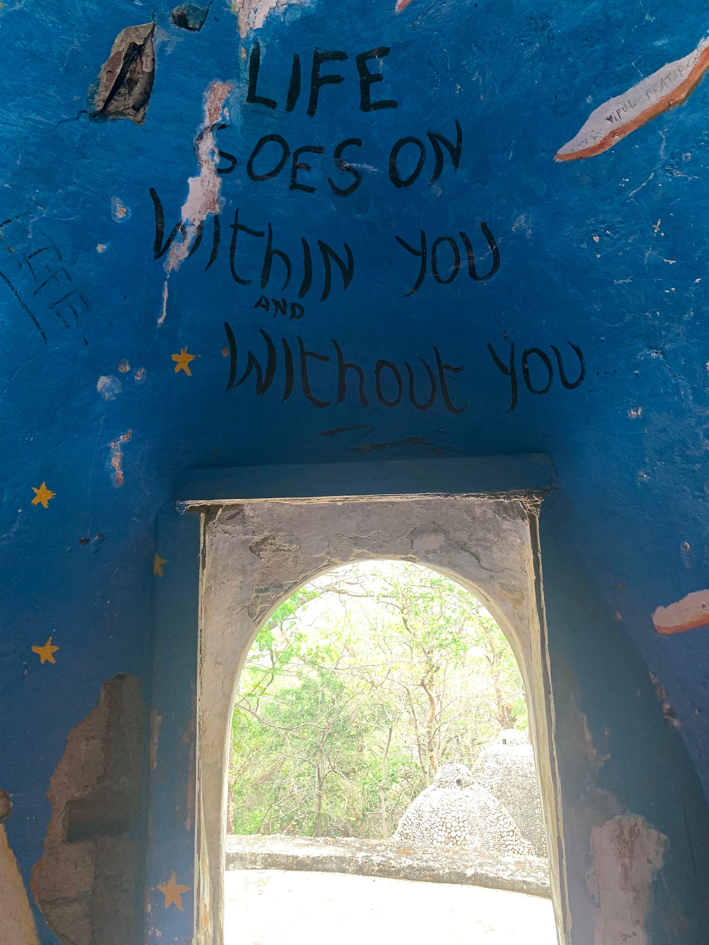 sees this confused buddha knowing that impermanence would someday bring us together in the spiritual ruins of immortal youth